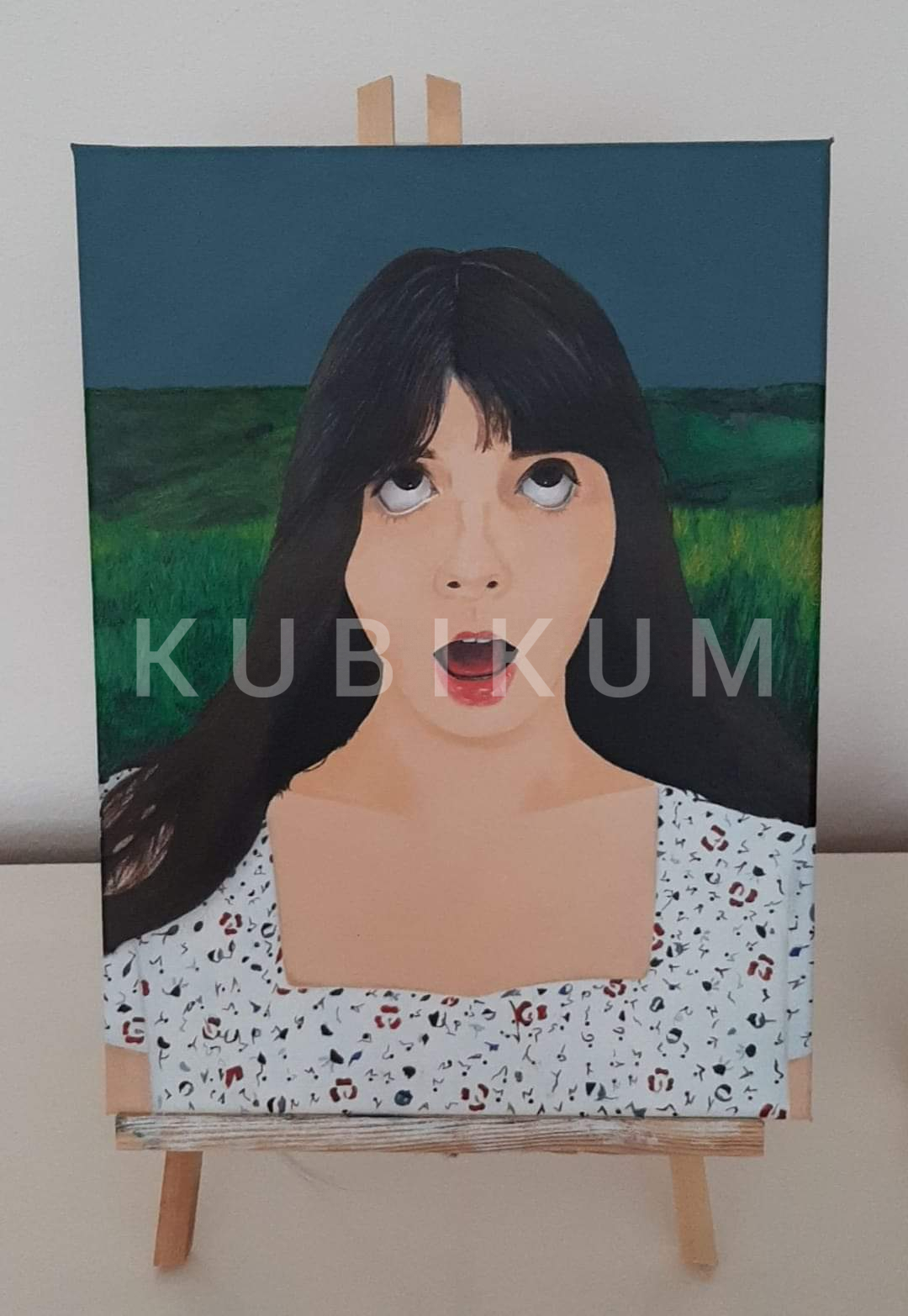 Namaľovala som seba ale ako jedného z padlých anjelov (bola som si inšpiráciou), preto napríklad nemám normálne oči. Bytosti v tejto časti "neba" (je to pod nebom ale nad zemou a rajom) majú rôzne tváre. Zaujala ma myšlienka o tom, že sú anjeli nepohladní a "čerti" pohladní. Na tomto mieste a pravda aj ďalej...padajú tí anjeli, ktorí majú iný názor a štipku zla v sebe (vedeli by ublížiť). Tento obraz je dokončený. (Nie všetky detaily sú presné, myslím teraz na tie šaty. Ostatné je tak ako má byť, keďže je to niečo ako časové pásmo...prvý obraz je pred pádom anjela a tento druhý po. Zotmenie naznačuje zmenu...dosť možný je blesk, ktorý tiež naznačuje, že sa niečo bude diať.)
