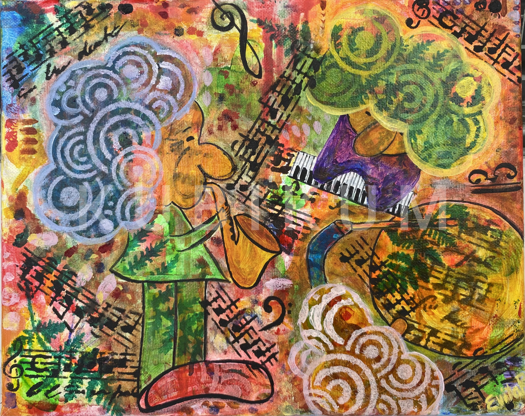 Intutivní obraz hudební pro každého, kdo se rád zasní, kdo miluje hudbu a nechá se obrazem přenést do doby Mozarta. Obraz je plný hudebních tónů, radosti a hravé energie.