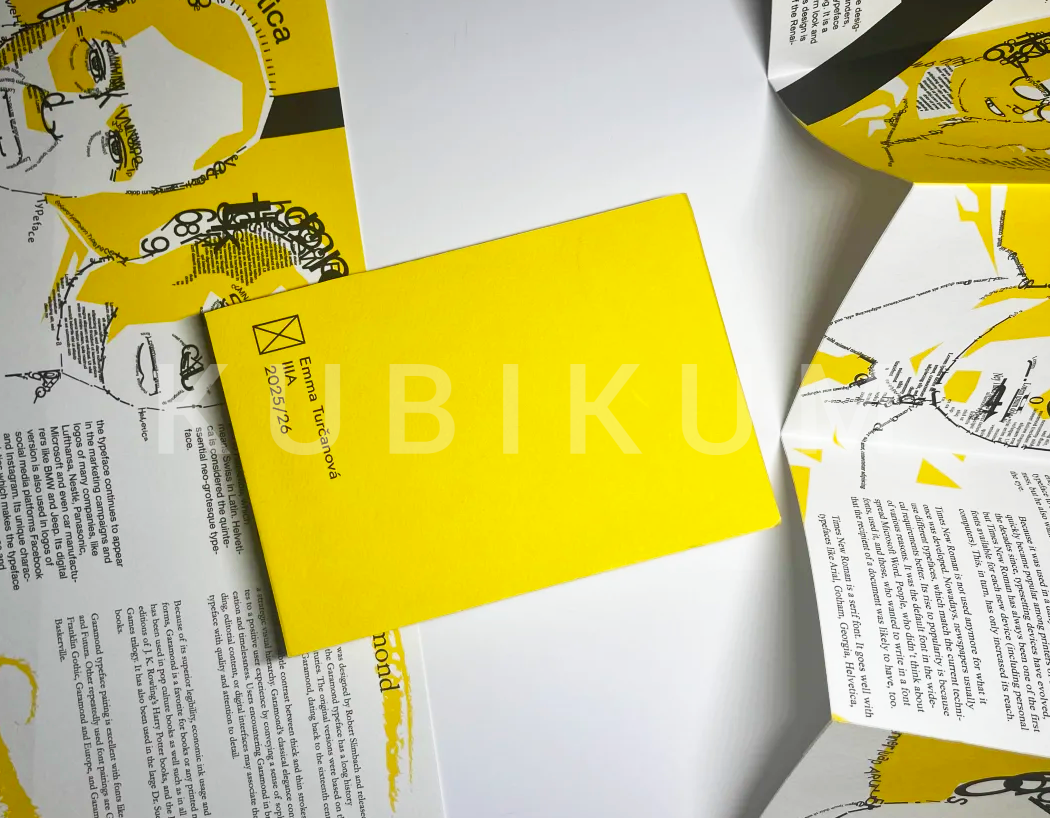 Kniha tvorená na polročnú tému Typosútra (typografia+sútra), zameraná na typefacy používané v dnešnom dizajne.