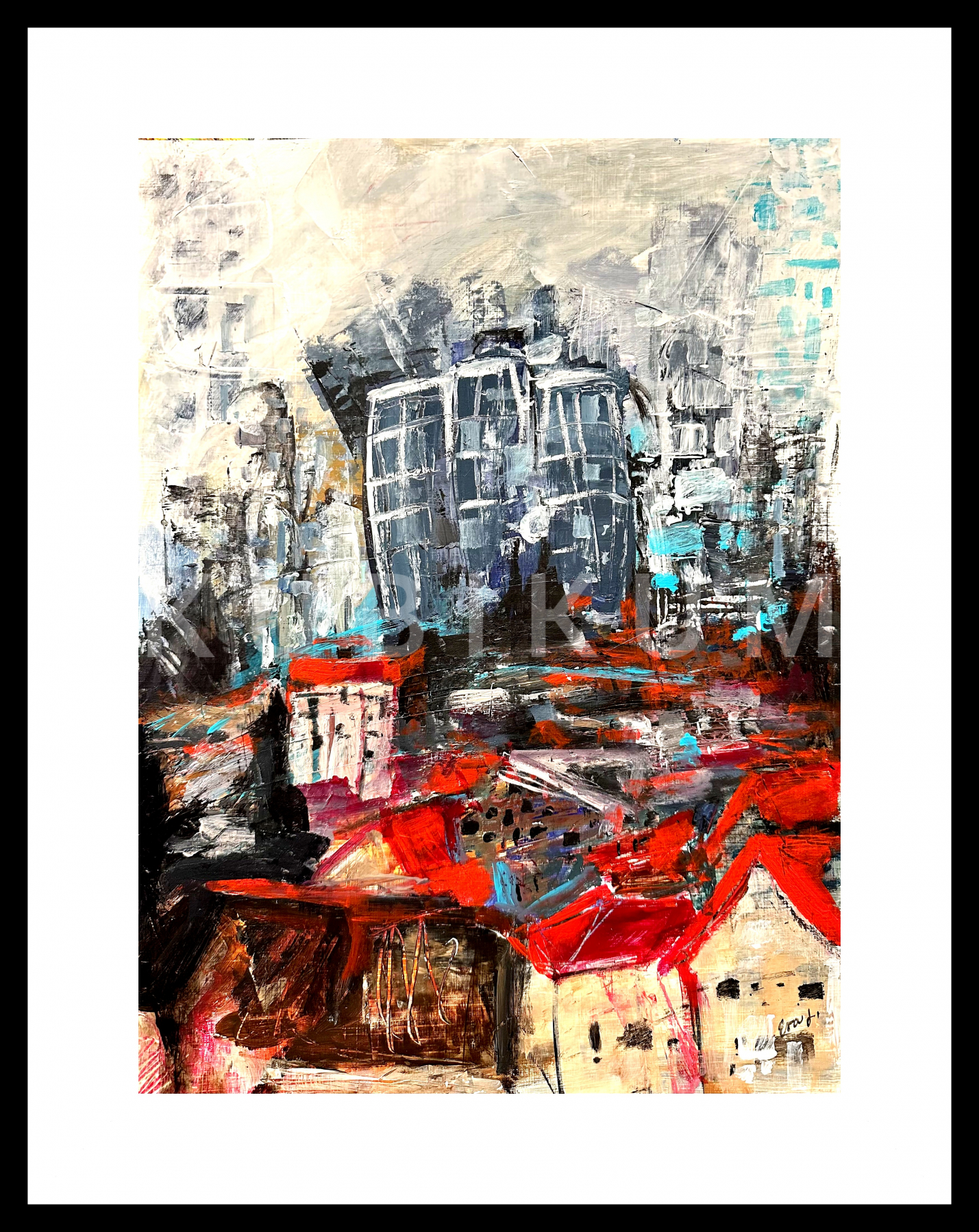 Obraz patrí do setu abstraktných obrazov z mojej tvorby - Roztopašná Bratislava . Dielo je originál a maľba je maľovaná akrylom na akrylový papier, je ošetrený záverečným lakom. Obraz má formát A3 ( 30x40cm ) .  Celkový rozmer obrazu aj s rámom je 40cmx50cm. Obraz predávam aj s rámom.