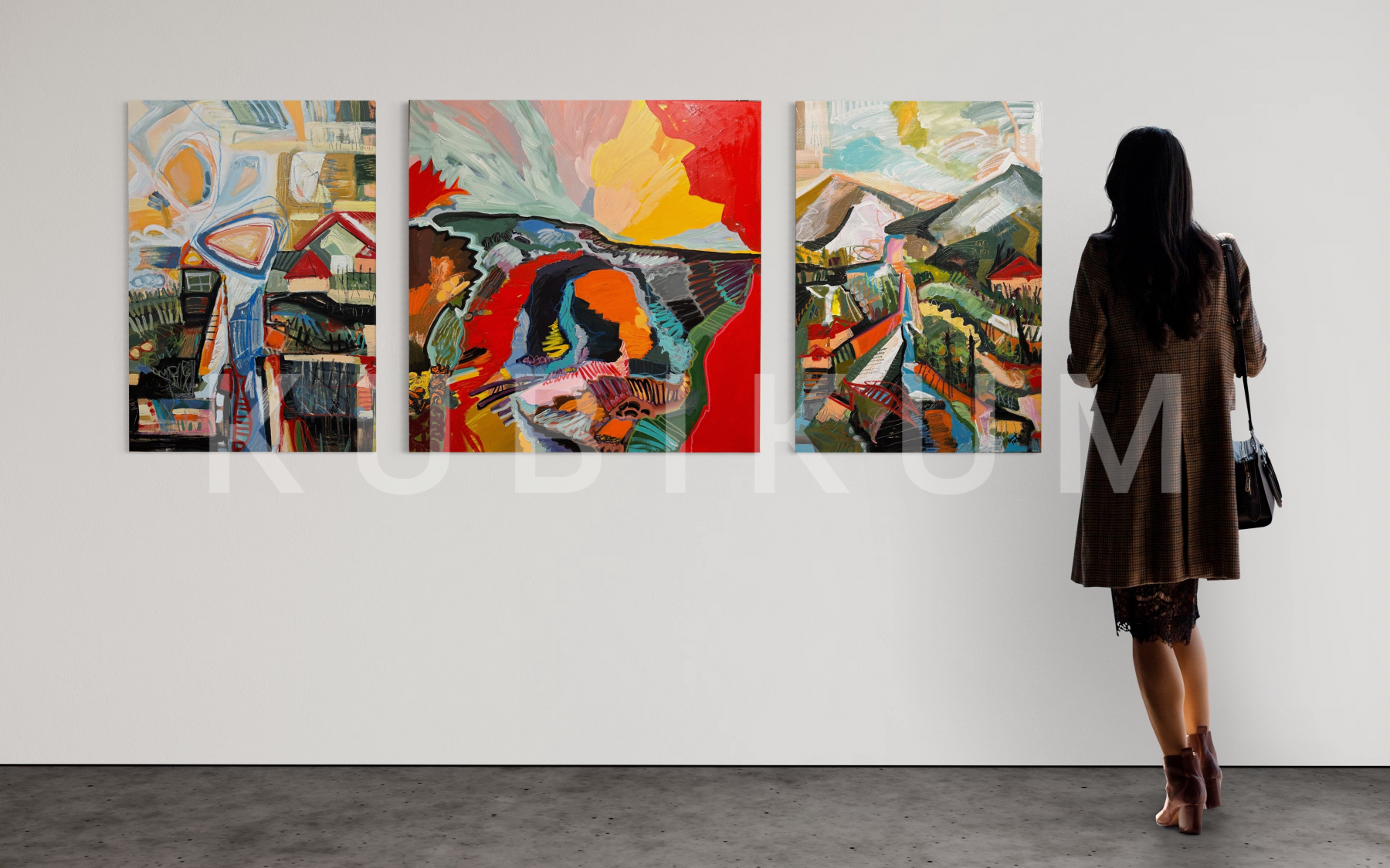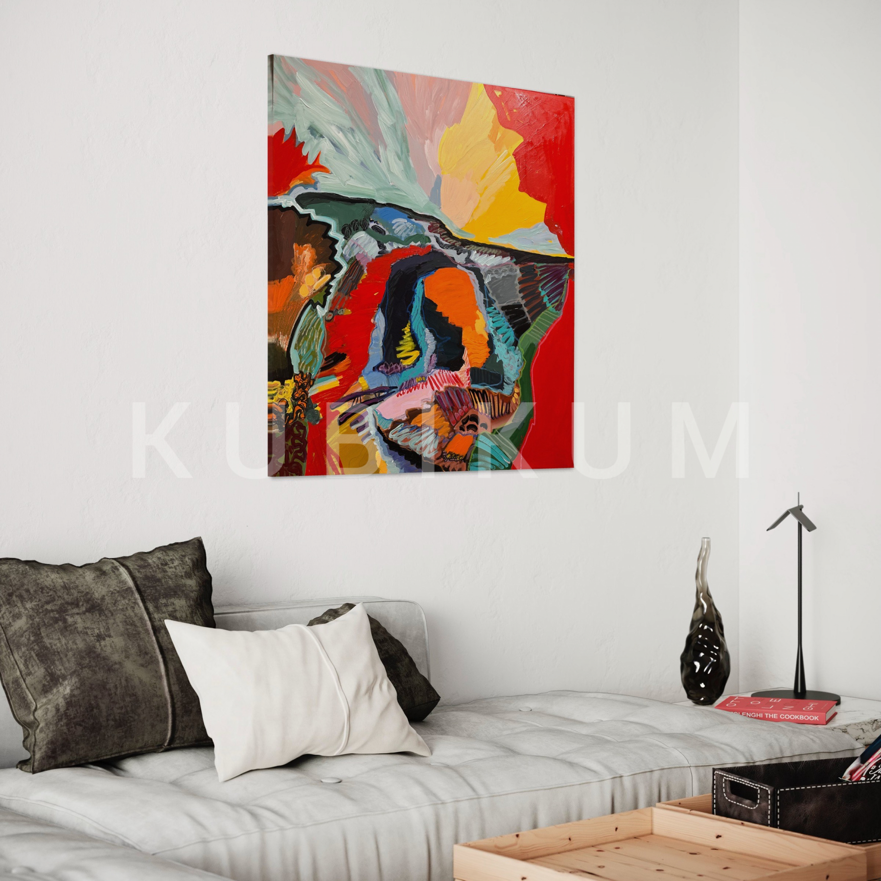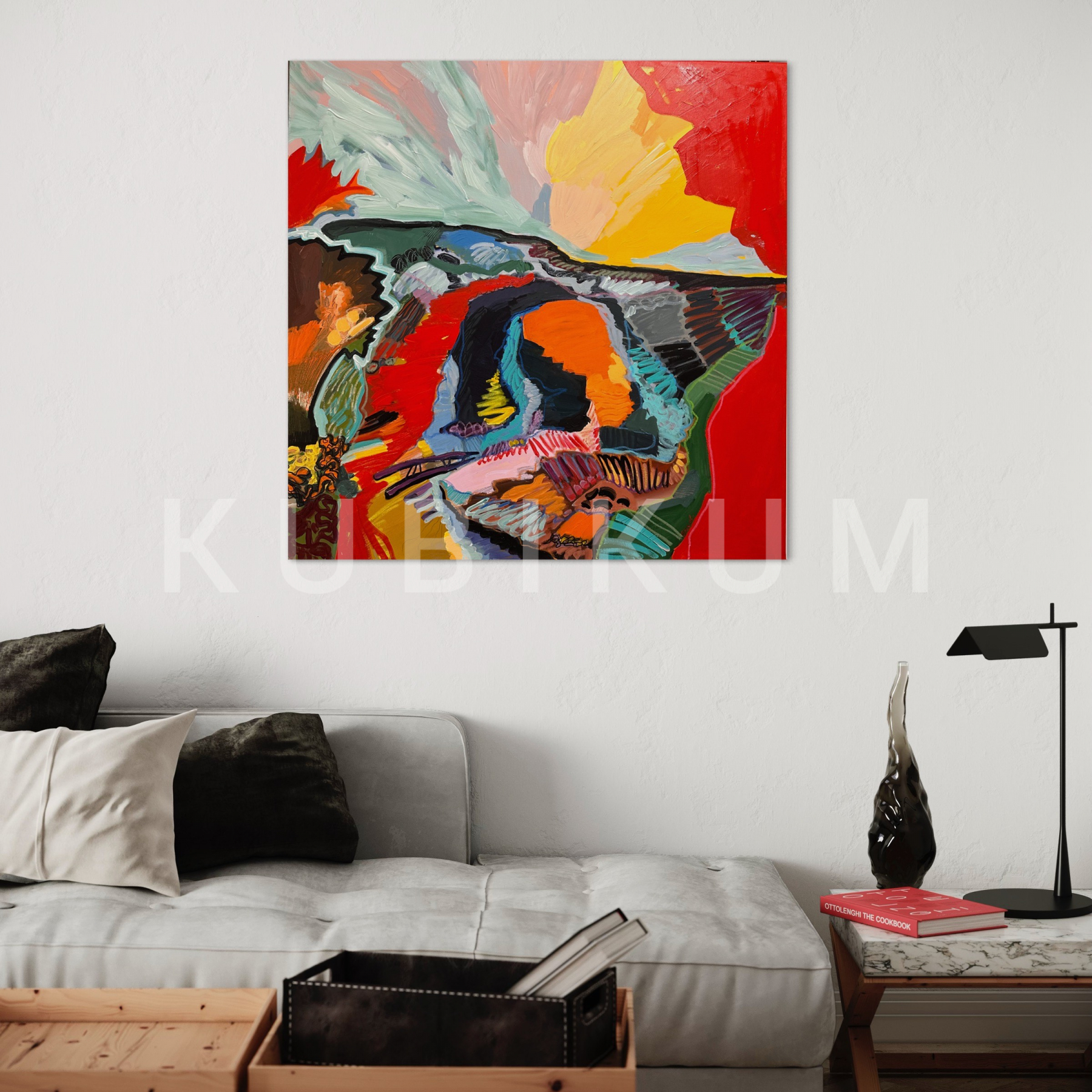 Abstraktná maľba akrylom na plátno. Kvalitné ľanové plátno na blind ráme hrubom 2cm. Maľba je ošetrená záverečným lakom.
