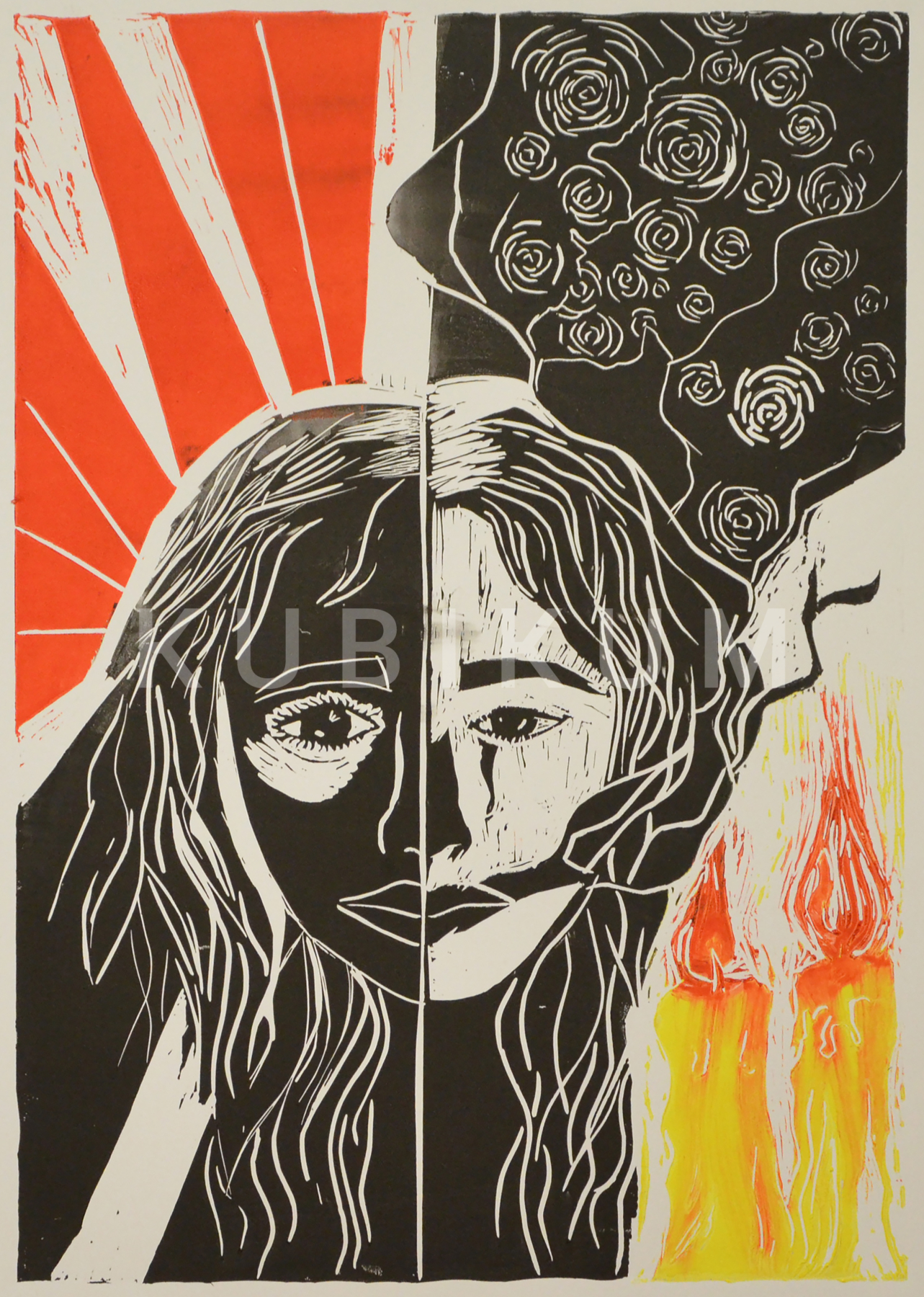 Dielo ukazuje, že každý človek v sebe nesie svetlé aj temné stránky a práve ich spojenie tvorí jeho podstatu. Tvár rozdelená na dve polovice predstavuje dva svety. Výrazne červená symbolizuje energiu, silu, nádej a túžbu rásť. Lúče v pozadí pôsobia ako svetlo, ktoré preniká cez chaos a ženú človeka dopredu. Pravá strana je tmavšia, plná ruží a nepravidelných tvarov, ktoré predstavujú vnútorné myšlienky, úzkosti a skryté emócie. Žlté sviece pripomínajú, že aj v tme stále horí svetlo - krehké ale prítomné.