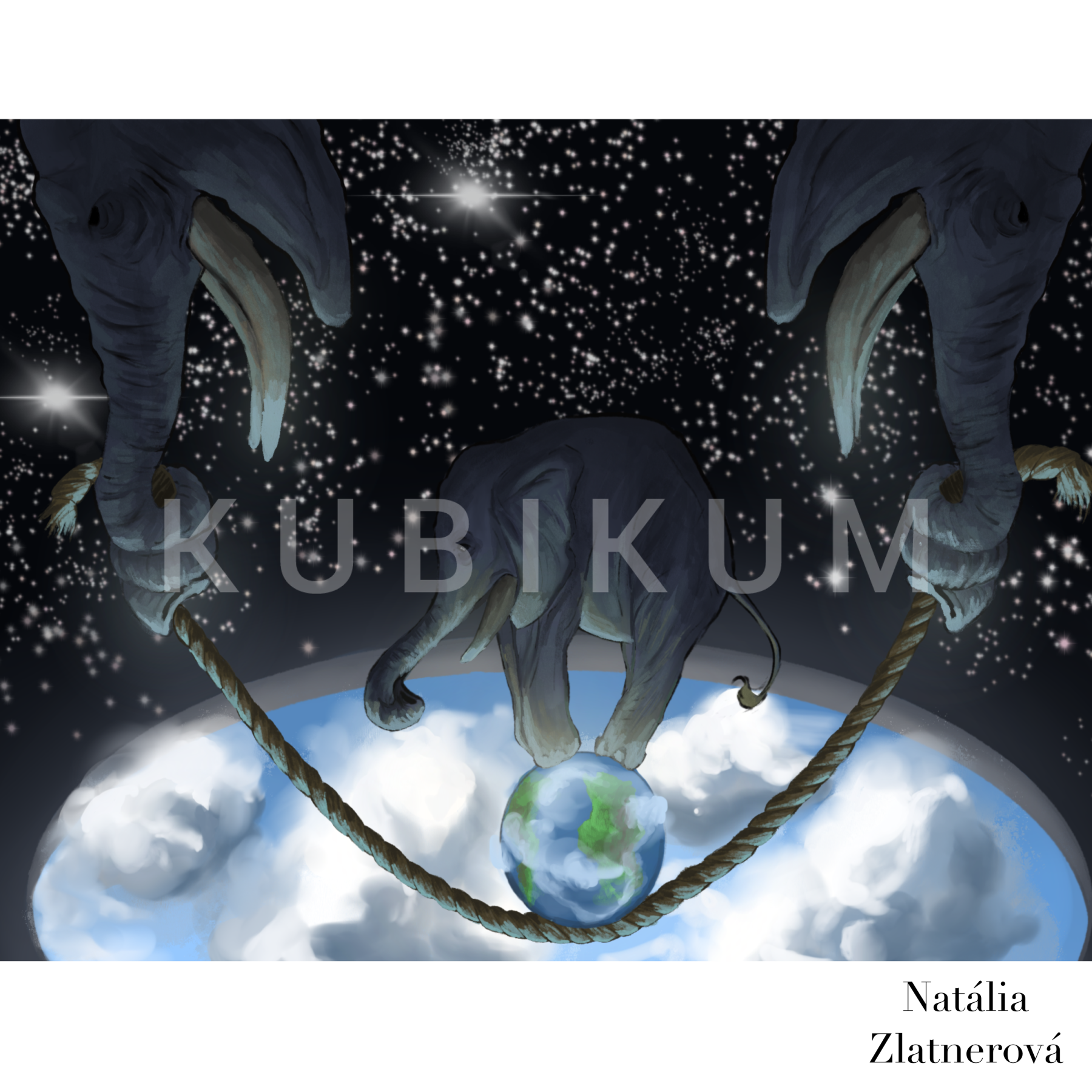 Na obraze vidíme slona stojaceho na malej Zemi, akoby bola len loptou pod jeho nohami. Tento slon je zároveň udržovaný dvoma obrovskými slonmi, ktorí napínajú hrubé lano v priestore plnom hviezd. Celá scéna sa odohráva vo vesmíre – v úplne nerealistickom, no fascinujúcom prostredí. Slon stojí na Zemi, ale zároveň je Zem podriadená jeho váhe. To predstavuje paradox moci a zraniteľnosti: niečo také veľké stojí na niečom tak malom, ale pritom to malé nesie obrovské bremeno.