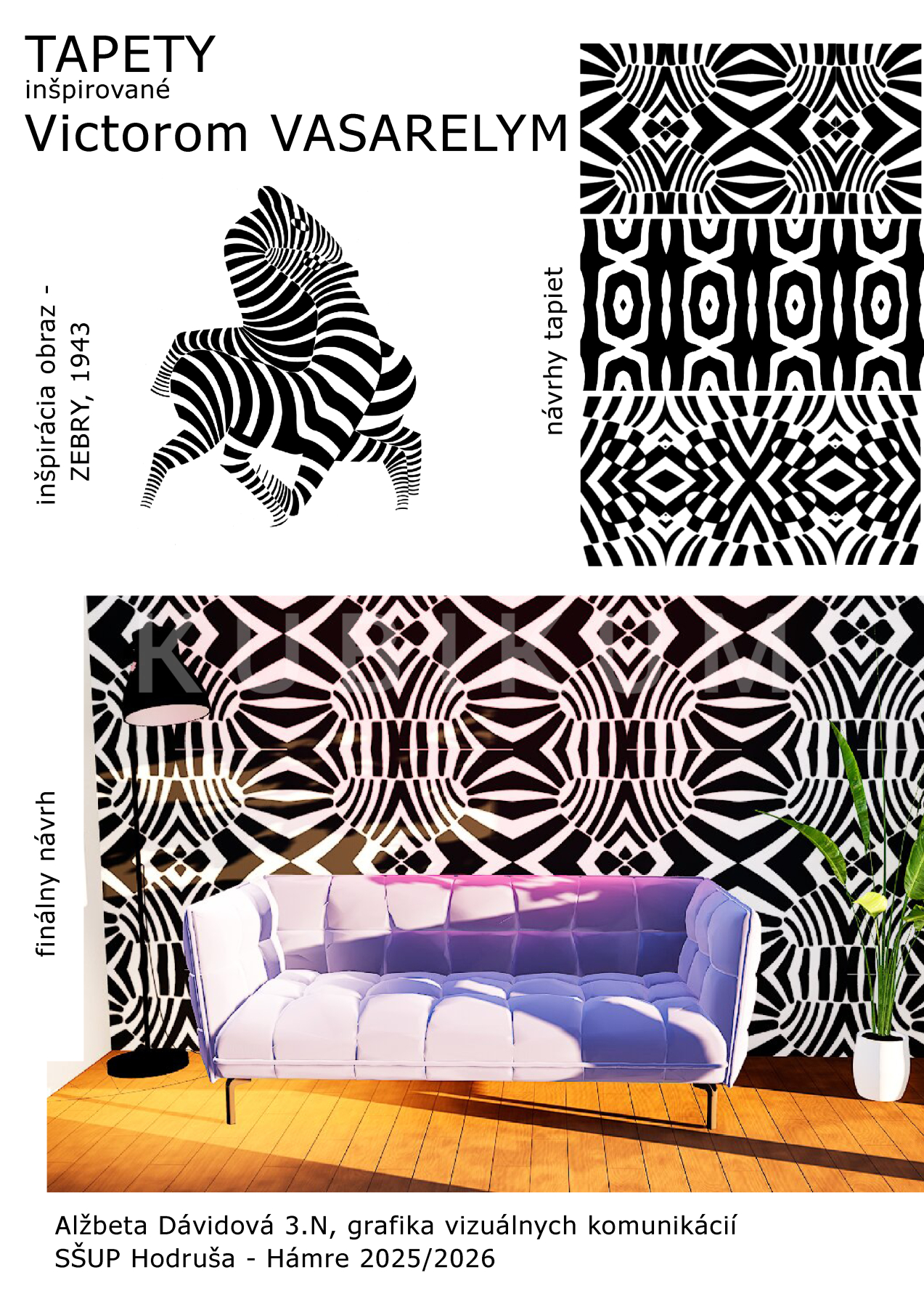 Môj návrh tapiet vychádza z Vasarelyho obrazu Zebry z roku 1943.