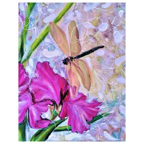 Purpurový kosatec z vážkou