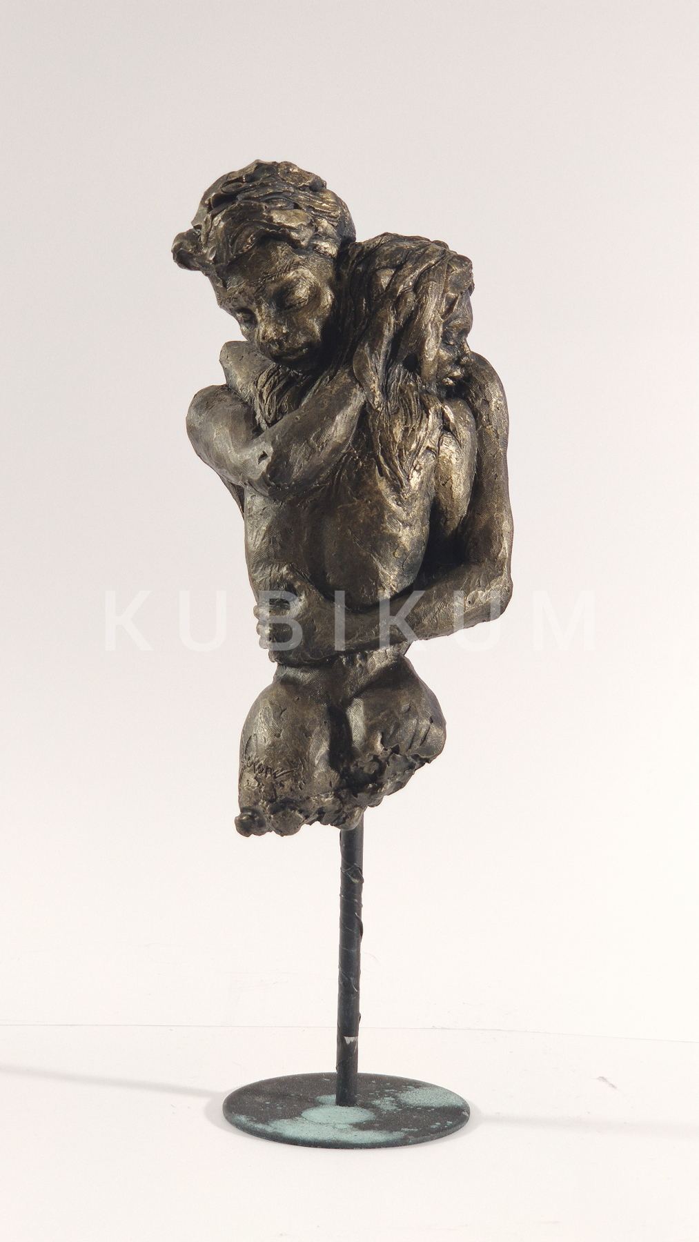 Socha objímajúceho sa páru, zachytáva okamih intimity a spojenia. Bez prítomnosti nôh sa pozornosť sústreďuje výlučne na torzá, kde sa umocňuje sila gesta – objatie ako univerzálny symbol blízkosti a spolupatričnosti. Dielo vyjadruje ľudskú potrebu dotyku, opory a pocitu, že nie sme sami.