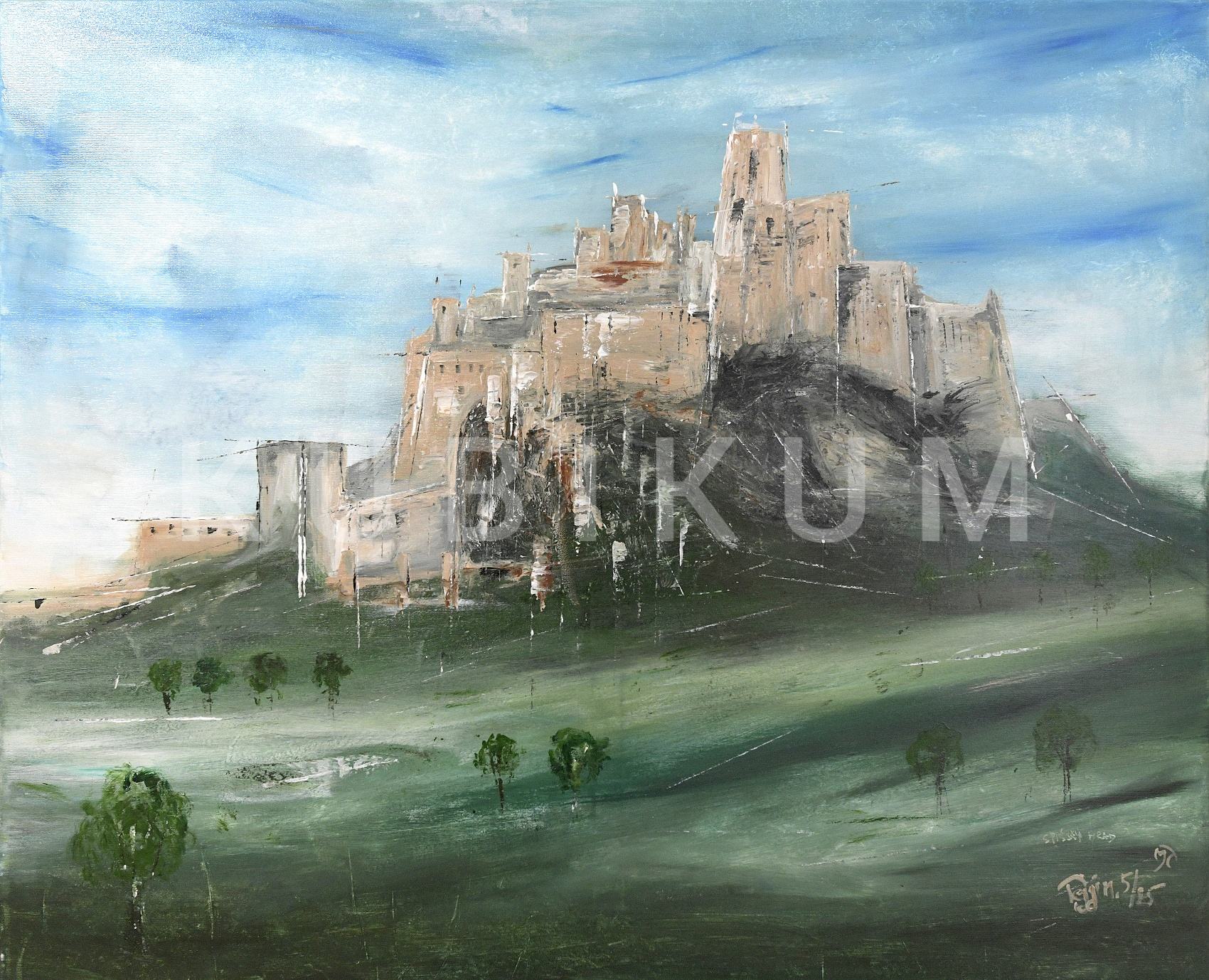 Región s hĺbkou a dejinami. Tento obraz prepája krajinu, hrad a oblohu do jedného výrazu – pokoja a nekonečnosti. Autorove farby a rukopis odhaľujú osobné puto k tomuto miestu.