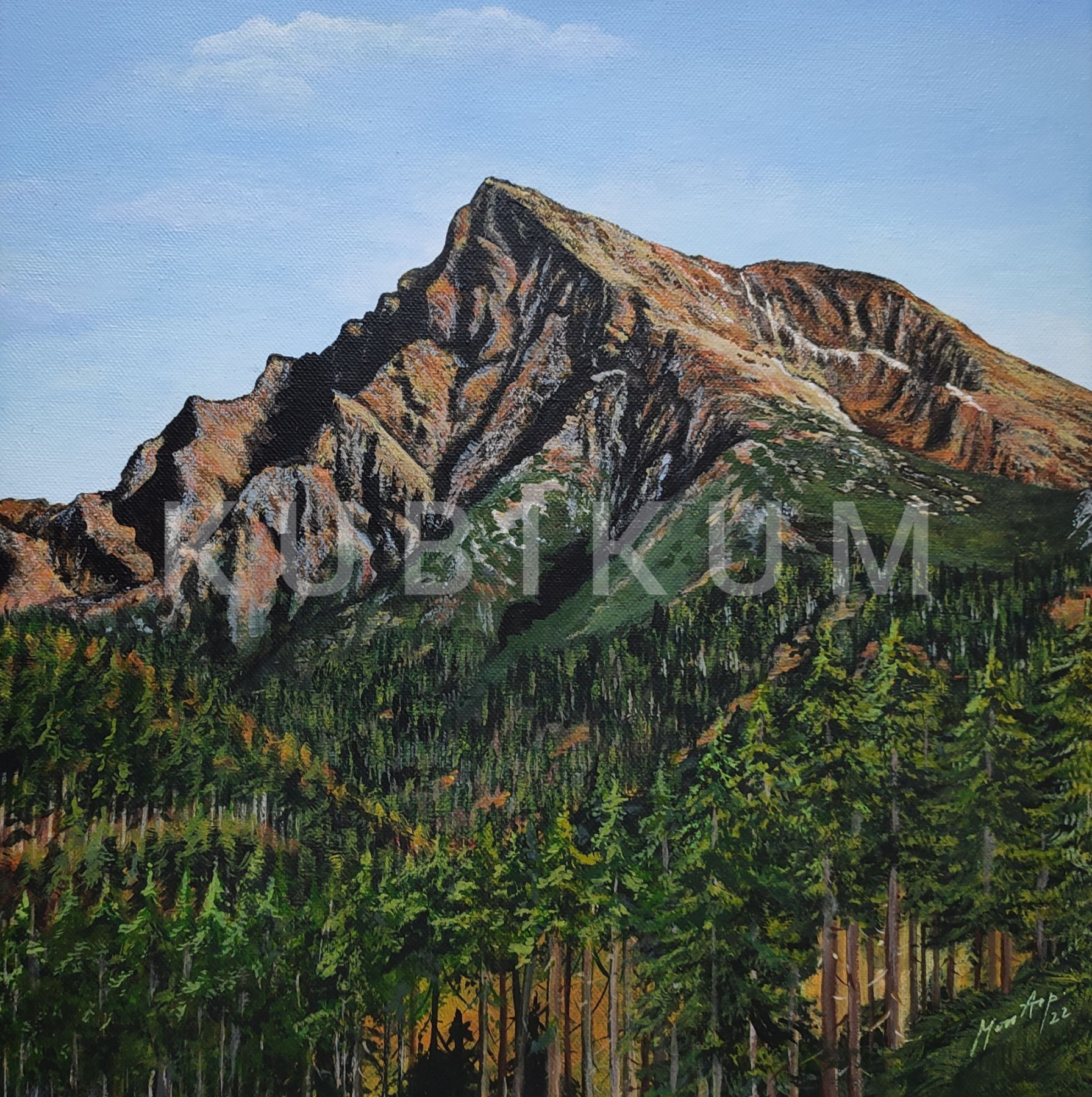 Obraz je maľovaný akrylovými farbami na plátne, ktoré je natiahnuté na ľahkom drevenom ráme. Vzadu má rám háčik a je hotový na zavesenie. Maľované sú aj bočné hrany plátna. Povrch je chránený lakom.