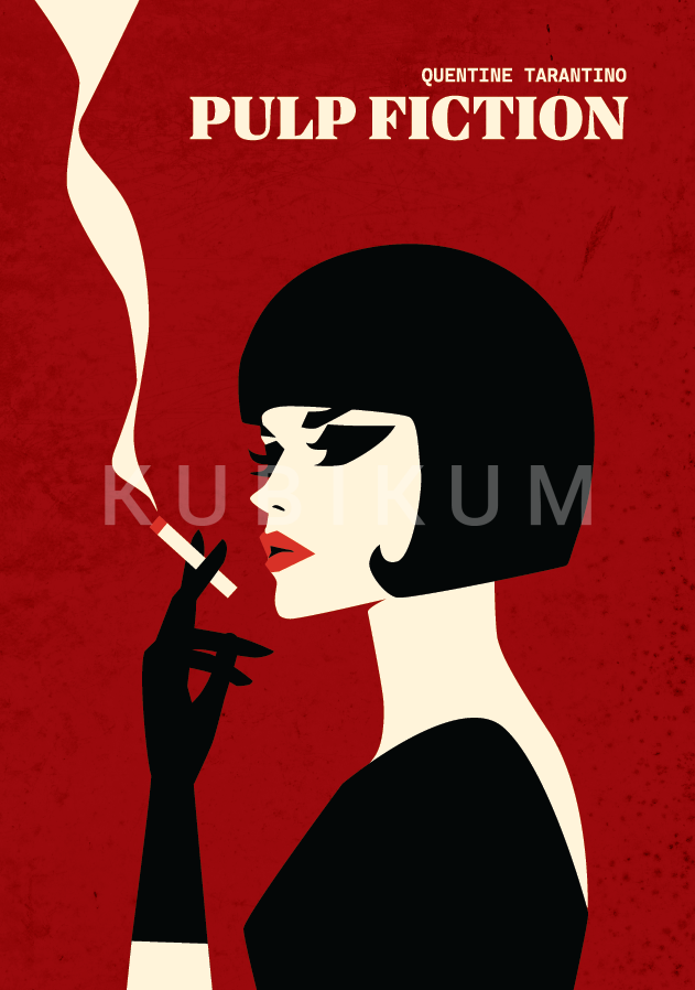 Tento sieťotlačový plagát je vizuálnou poctou jednému z najikonickejších filmov 90. rokov – Pulp Fiction režiséra Quentina Tarantina. Silueta s ostrými líniami a štýlizovanou tvárou evokuje estetiku pop-artu a film-noiru, čím odkazuje na dramatickú atmosféru samotného filmu.Využitie sitotlače podčiarkuje grafickú čistotu a nadväzuje na tradíciu pop-artu i reklamného plagátu druhej polovice 20. storočia.
