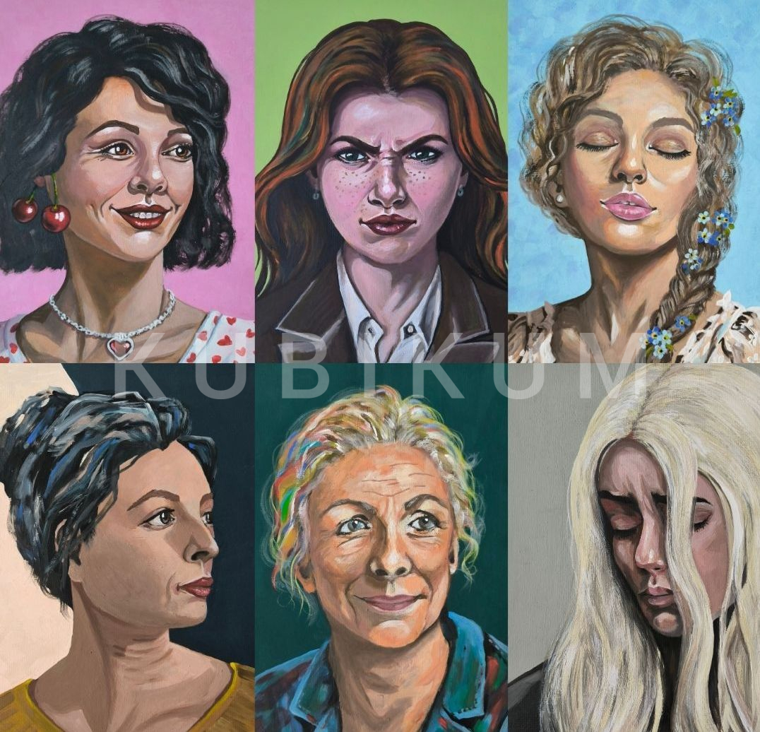 6 portrétov = 6 rôznych stavov v živote ženy: zamilovanie, rozhorčenie, snívanie, mlčanie, starnutie a utrpenie.