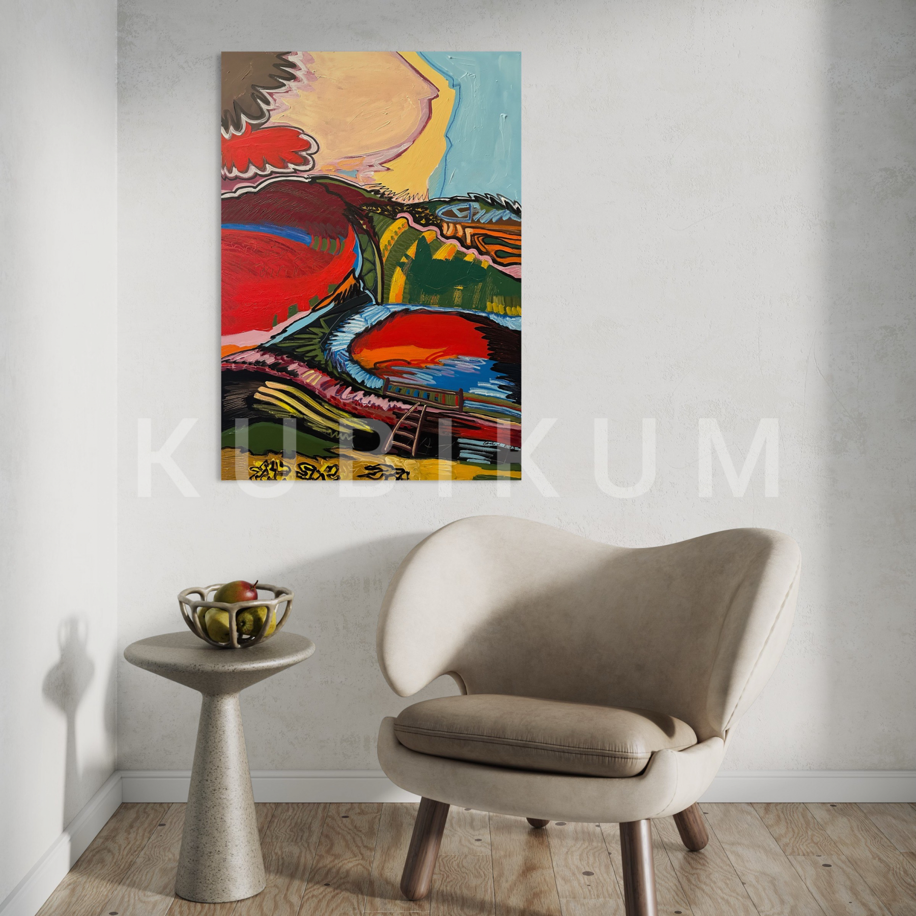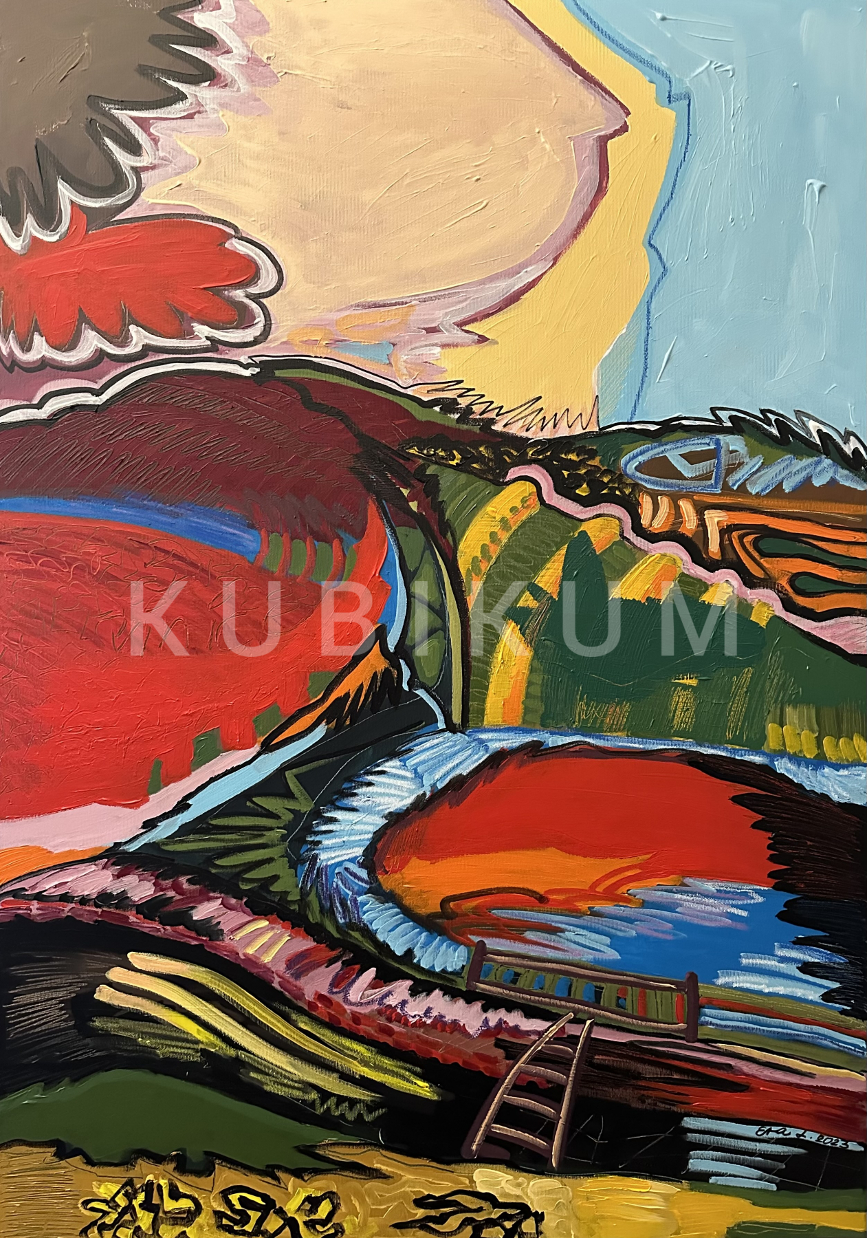 Maľba akrylom na plátno. Kvalitné ľanové plátno na blind ráme hrubom 2cm. Maľba je ošetrená záverečným lakom.