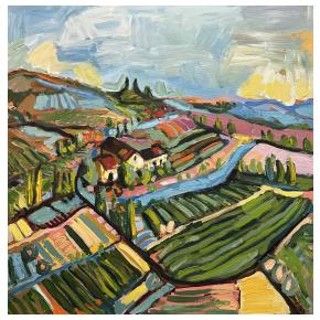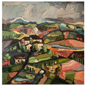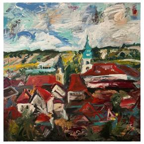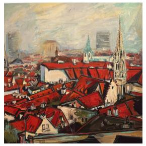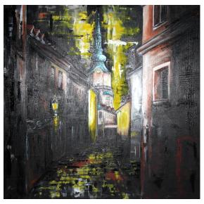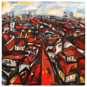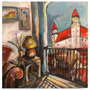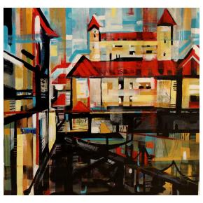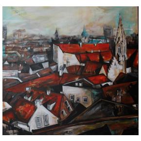 Som výtvarníčka žijúca a tvoriaca v malej obci Hrubý Šúr pri Senci. Moja tvorba je ovplyvnená hlavne životom v Bratislave kde som študovala a žila dlhé roky. Svoju tvorbu zameriavam hlavne na mestskú tému a venujem sa akrylovej maľbe. Vo svojich maľbách sa snažím zachytiť pocit, farby a tému tak, aby výsledná maľba bola zrozumiteľná pre každého. Inšpirujú ma strechy v Starom meste , hlavne výrazná červená farba a pocit, keď pri pohľade zhora vidieť hrať melódie striech v rôznych rytmoch farieb. |